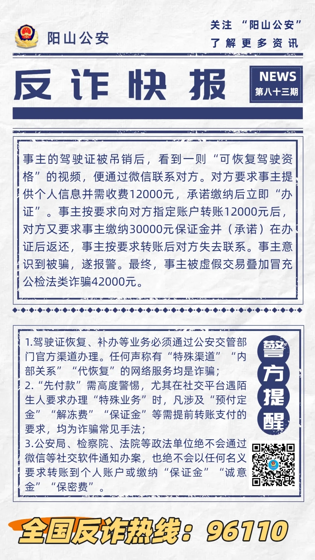 【反詐快報(bào)83期】駕照吊銷欲“復(fù)活”,連遭“辦證費(fèi)”“保證金”陷阱