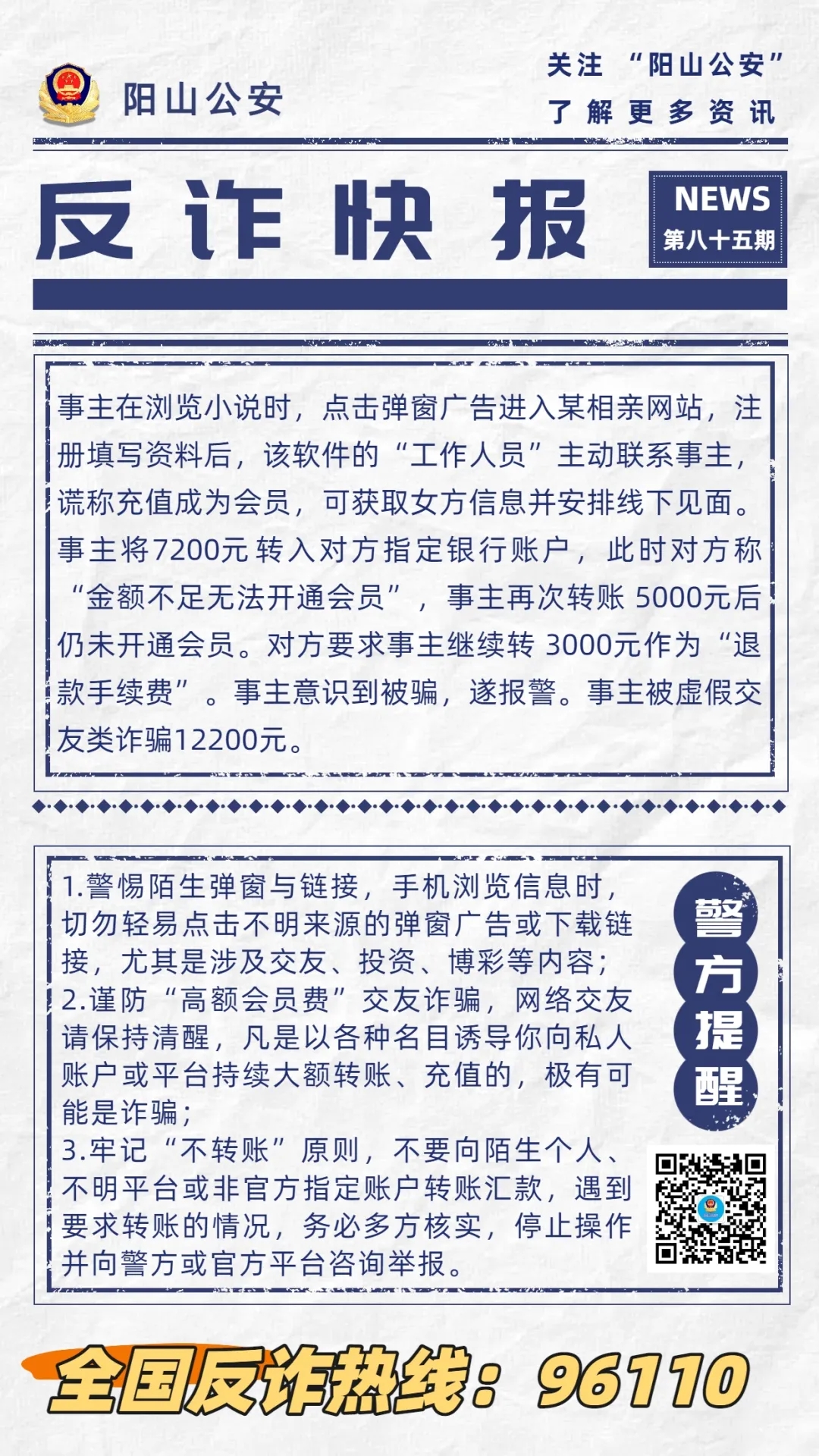 【反詐快報(bào)85期】輕信相親網(wǎng)站,男子陷入“甜蜜陷阱”被騙