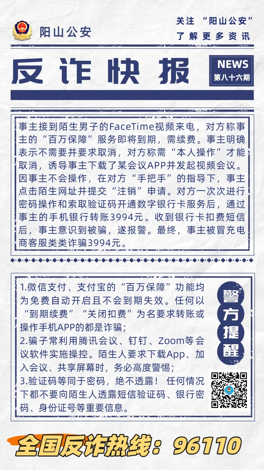 【反詐快報(bào)86期】FaceTime來電誘導(dǎo)轉(zhuǎn)賬,警惕“百萬保障”騙局!