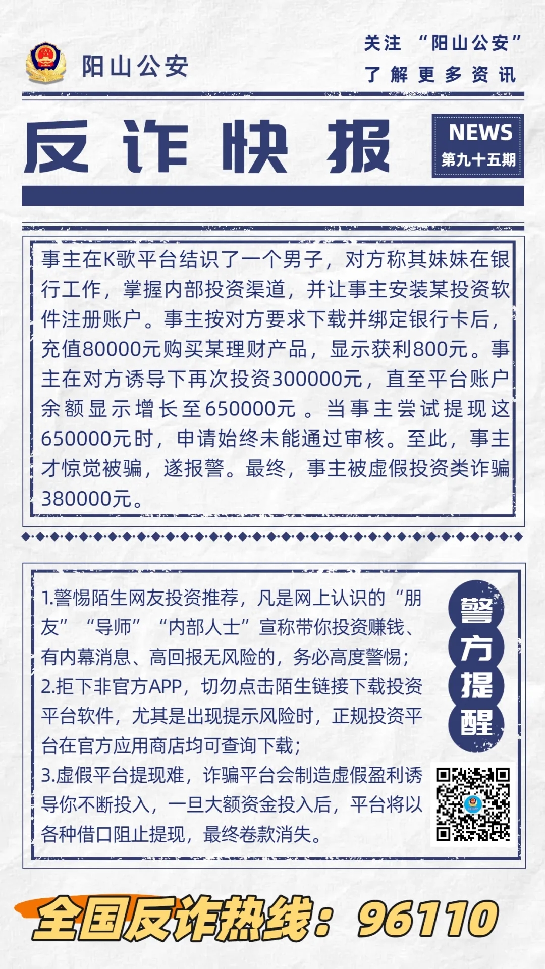 【反詐快報95期】 謹防“內幕消息”,女子深陷虛假投資騙局!